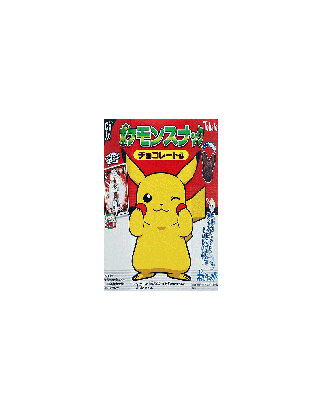 En esta ocasión tenemos un snack dedicado a todo un emblema de los videojuegos y el anime como Pokemon, y a su personaje más adorable, Pikachu, que es ideal para comerlo a en cualquier momento: Son unos cereales en forma de Pikachu con sabor a chocolate, que además vienen con un sticker o pegatina de un pokemon aleatorio.